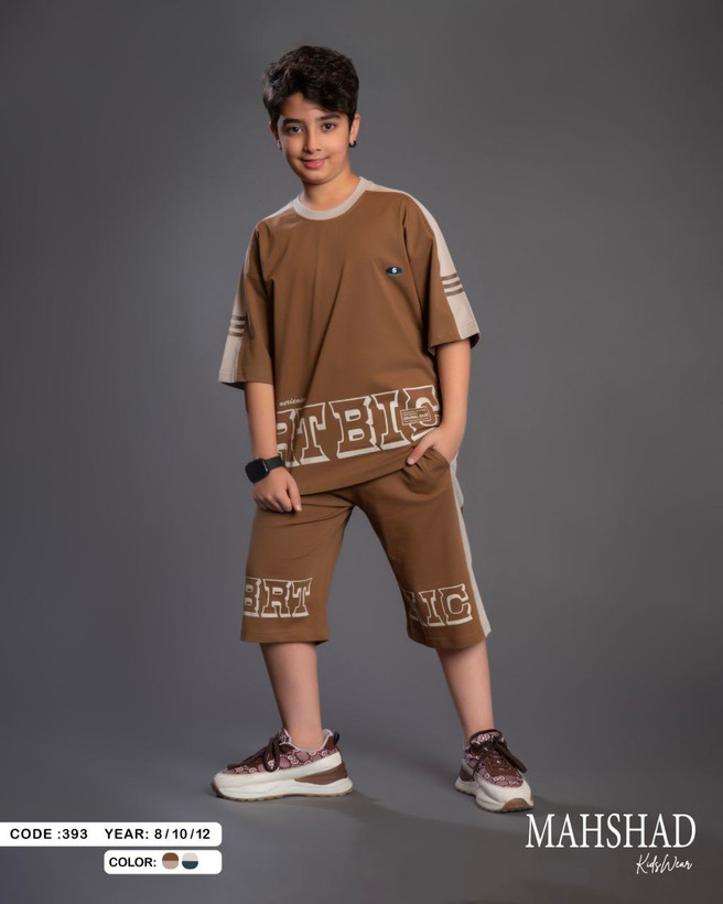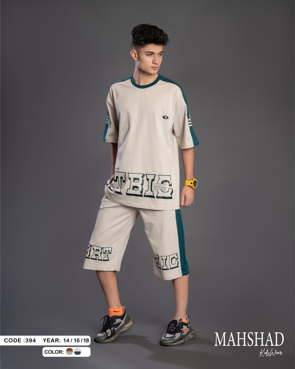 ست تیشرت و شلوارک راحتی جنس نخ پنبه لاکرا دار سایز 55,60,65,70,75,50