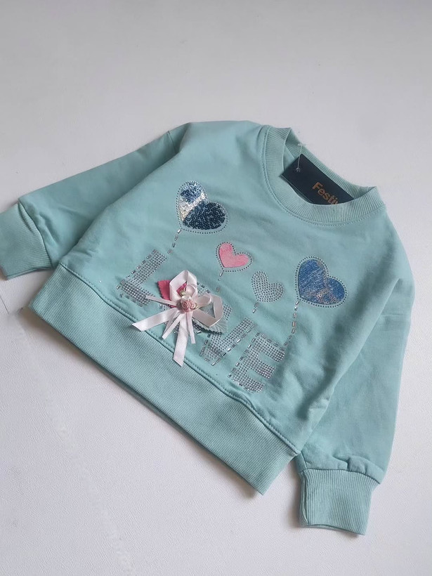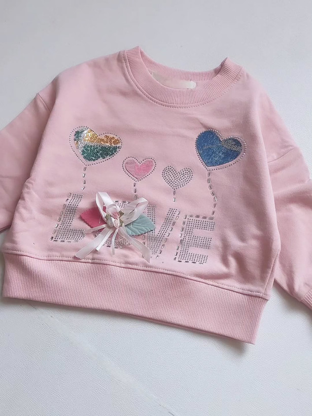 بلوز دخترانه نگین کاری طرح love سایز 30,35