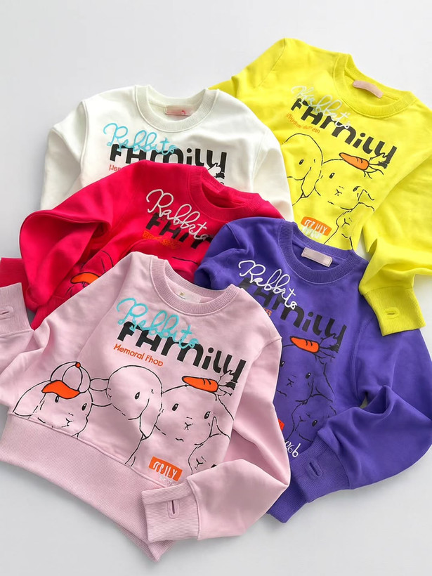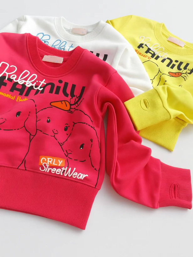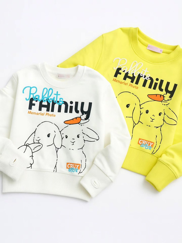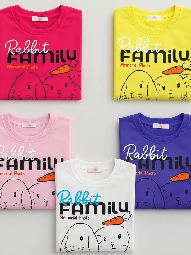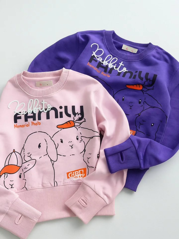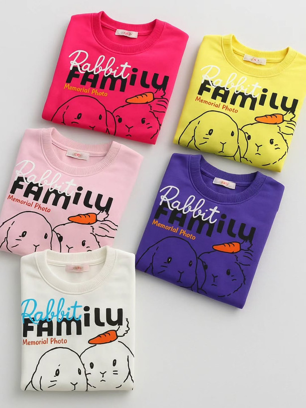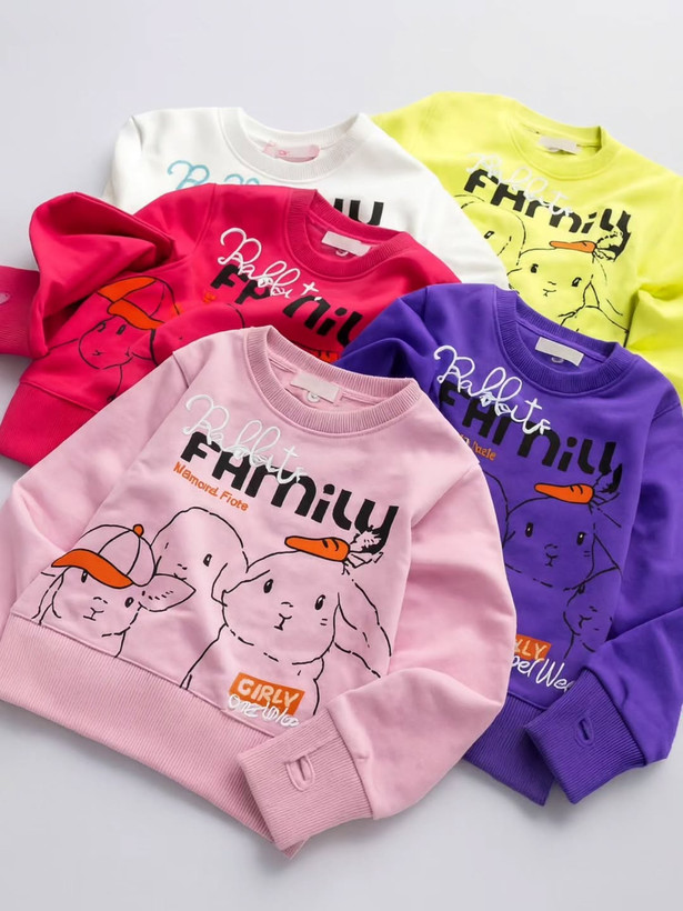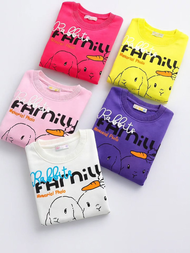 کراپ دخترانه آستین فینگر دار جنس دورس دو نخ طرح خرگوش سایز 50