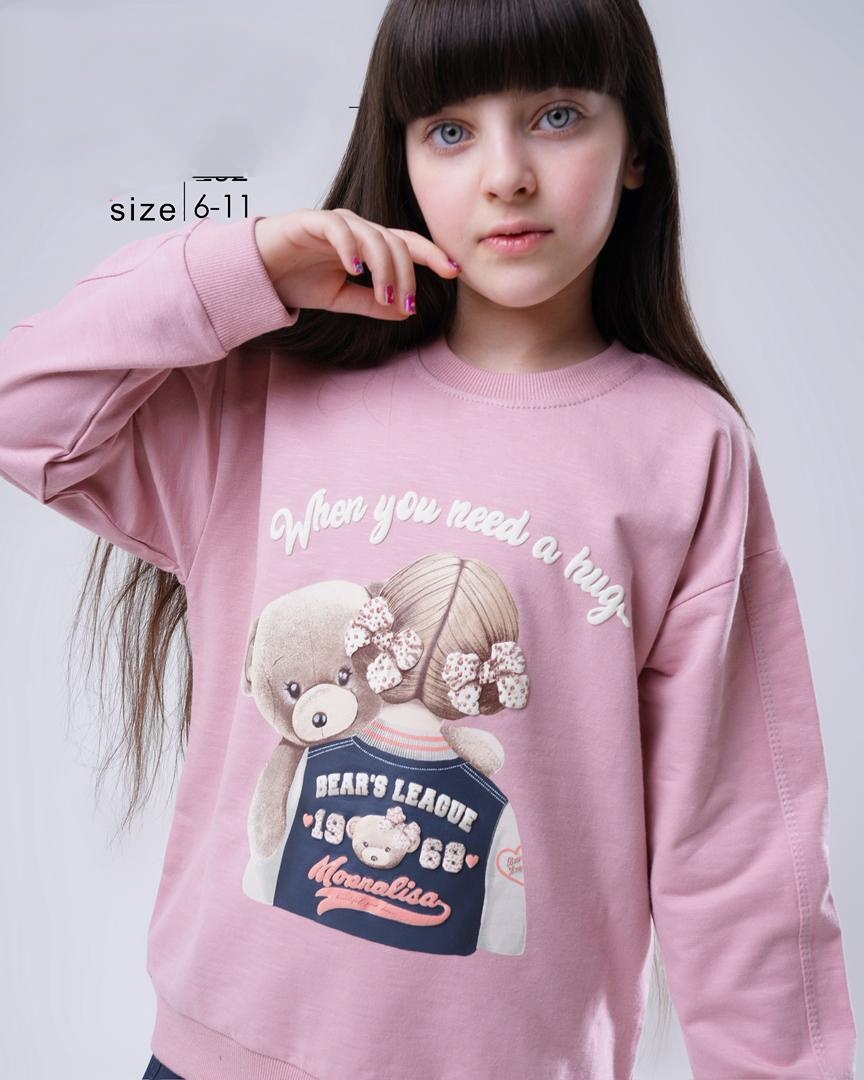 بلوز و شلوار دخترانه طرح دختر و خرس چاپ پفکی