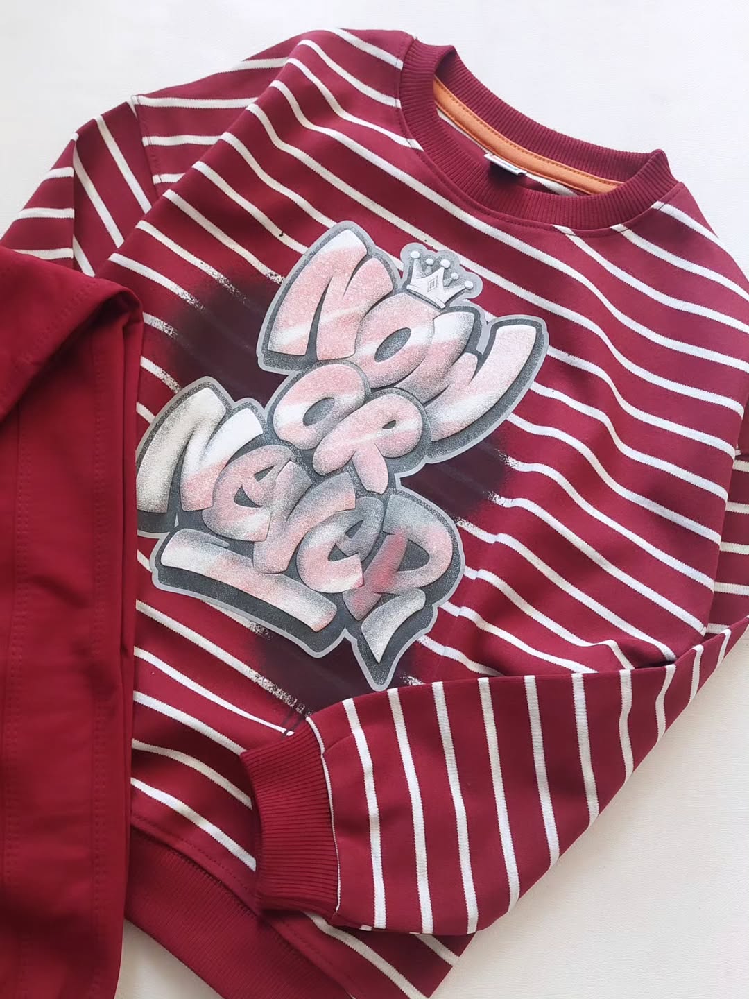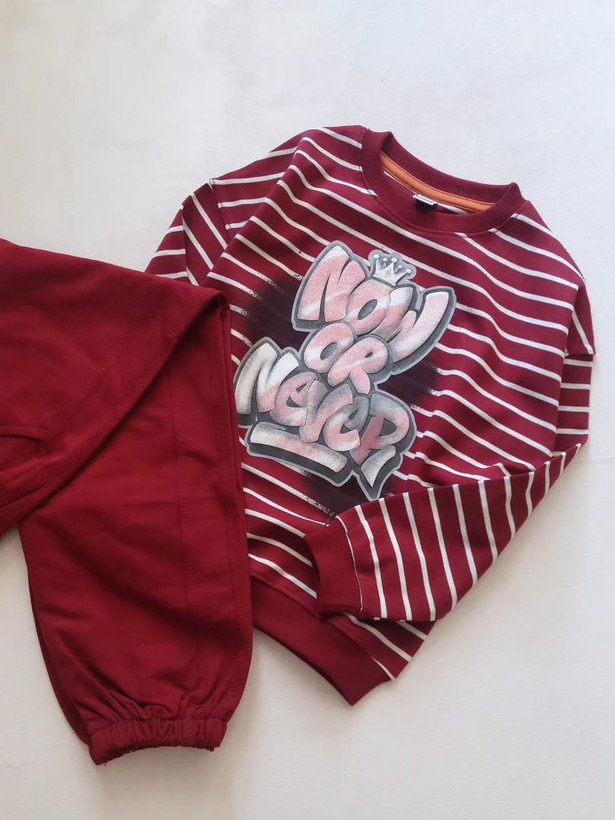 بلوز و شلوار راه راه اسپرت طرح نوشته چاپ پفکی با دوام