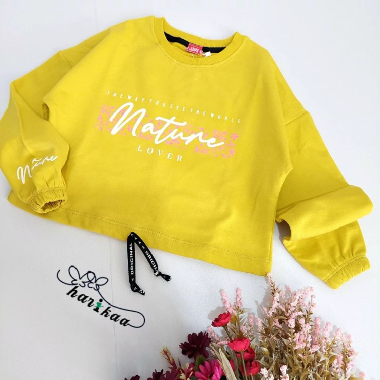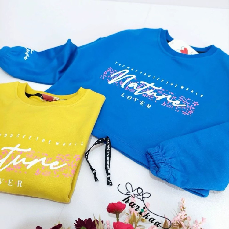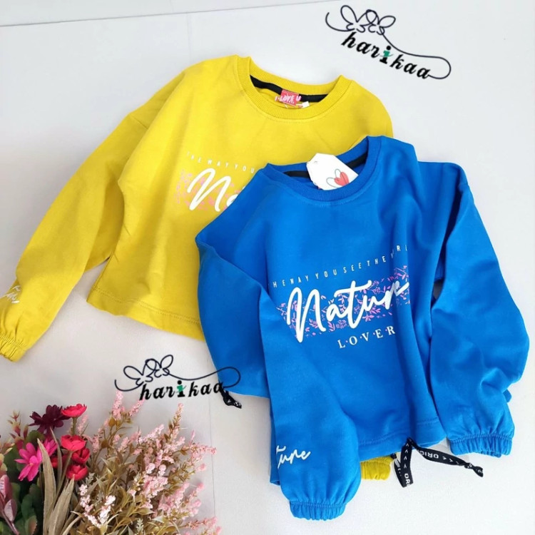 کراپ دخترانه آستین بلند پایین گت دار جنس دورس پنبه لاکرا در دو رنگ و سایزبندی 50تا 70