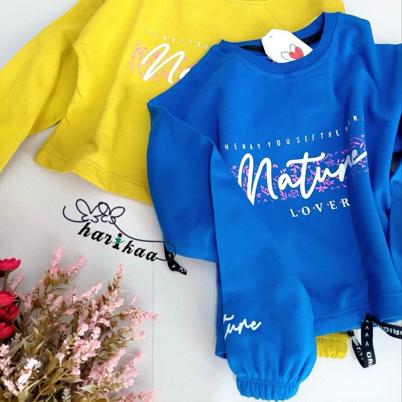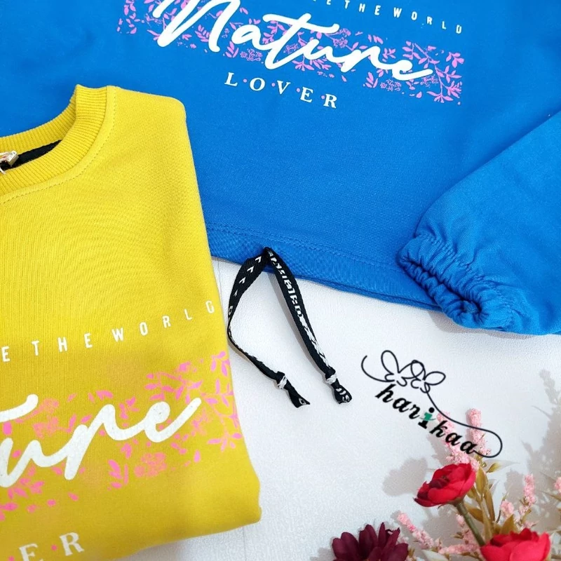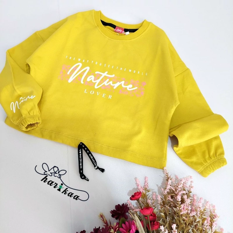 کراپ دخترانه آستین بلند پایین گت دار جنس دورس پنبه لاکرا در دو رنگ و سایزبندی 50تا 70