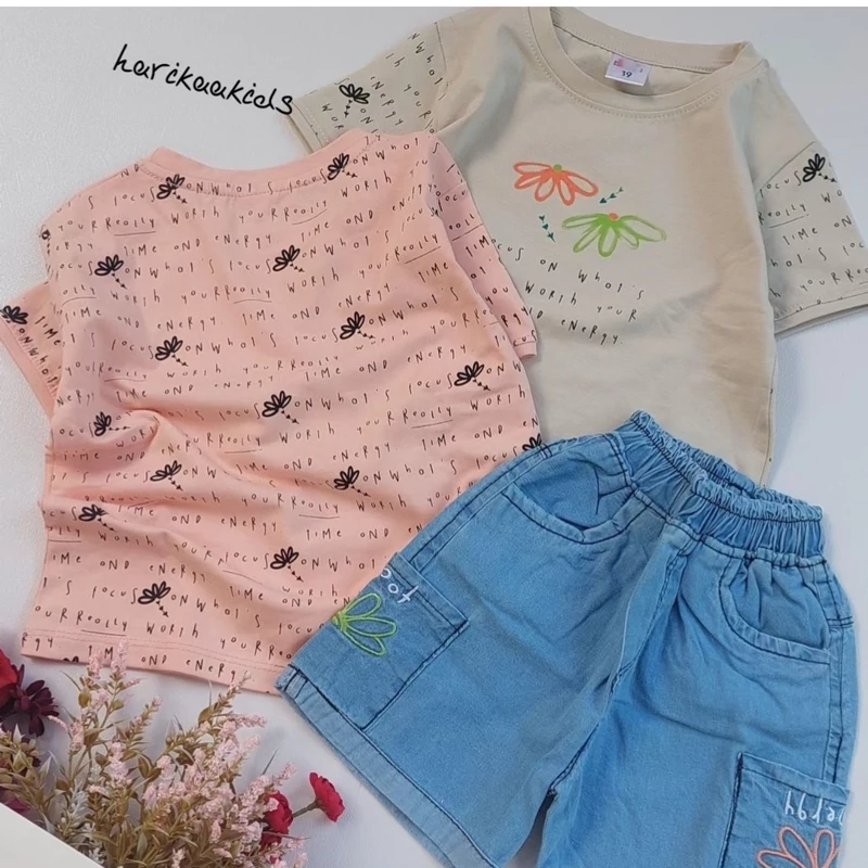 ناموجودست دخترونه تیشرت و شلوارک طرح دار جنس تیشرت نخ پنبه جنس شلوارک جین